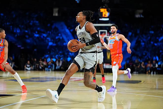 本场比赛中,马刺的先发外线投射德文-瓦塞尔(Devin Vassell)的表现还是相当稳定的。瓦塞尔全场出场32分14秒,投篮13中6,三分线外9中4,罚球8中7,得到了全队最高分23分外加5篮板4助攻1抢断1盖帽的数据,还有1次失误和3次犯规,正负值为+10。瓦塞尔虽然出手次数不多,但是他也是将自己全面的得分能力发挥了出来,他在外线投篮方面的表现也是值得肯定的,他也是展现出了一名投手应有的水准。瓦塞尔在传球和组织方面的表现同样是相当突出的,同样是起到了很好的效果的。甚至瓦塞尔在防守端的表现也是值得肯定的,同样是起到了很好的效果。马刺能够在不被看好的情况下战胜实力强大状态出色的对手,也和瓦塞尔的出色表现有着密切的关系。
